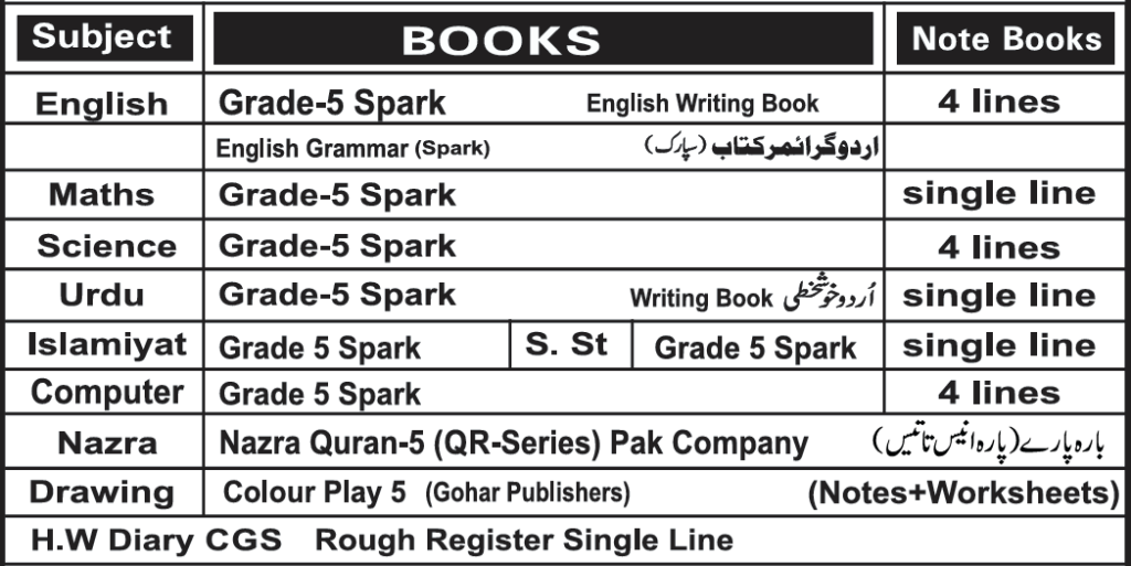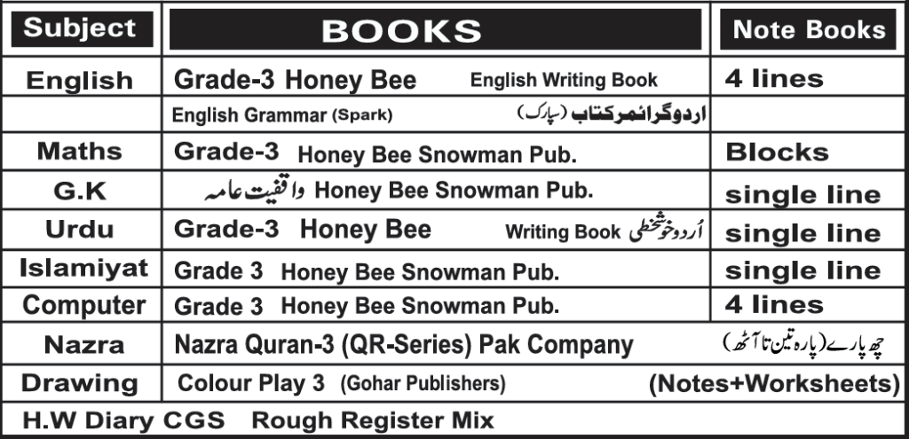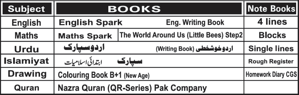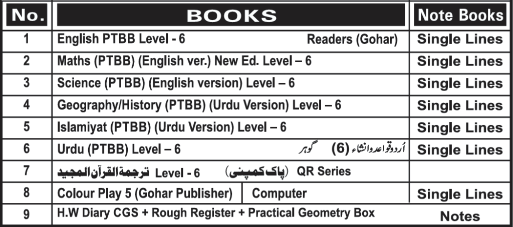 Play Group Nursery Prep Stationary (P.G to Prep) Class One Class Two Class Three Class Four Class Five Class Six Class Eight Class Nine Class Ten